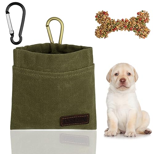 vsshe Puppy Treat Bag, Valp Treat Bag, Självförseglande, Vattentät Hund Treat Bag med karbinhake, Valp Walking Bag, Dog Treat Bag Träning och valpträning Matpåse för resor, promenad, ArmyGreen