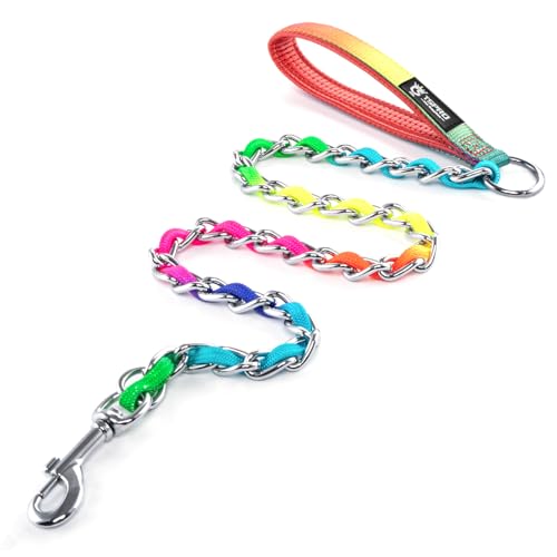 TSPRO tuggsäkert regnbåge hundkoppel rostfritt stål hundkoppel metallkedja träning hundkoppel med mjukt handtag för medium stor hund