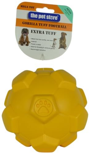 Pet Store Gorilla Tuff flytande fotbollshundleksak, perfekt för att kasta och hämta spel på land och i vatten. Uppmuntrar hälsosam träning för din hund.