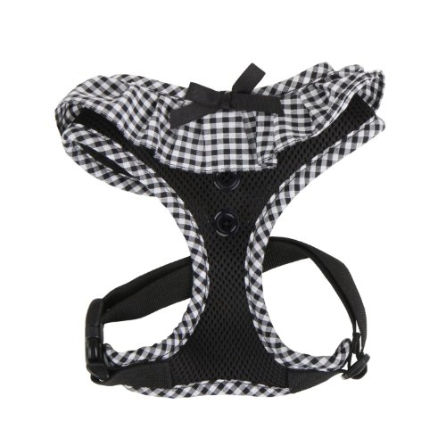 Puppia Dotty Step-in väst hundsele inget drag ingen choke lättanvänd träning promenader för liten hund, medium, svart