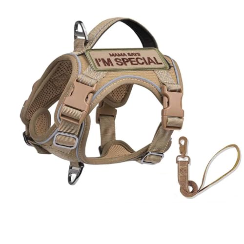Utomhus hund camping träning jakt sele militär taktisk med kontrollhandtag justerbar liten hund nylonsele och koppel set reflekterande militär taktisk hundsele, A, XS
