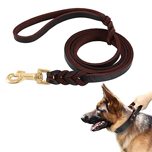 Keyohome Hundkoppel 3 meter långt äkta läder brunt flätat hundkoppel för hund eller medium justerbar träning (2 m)