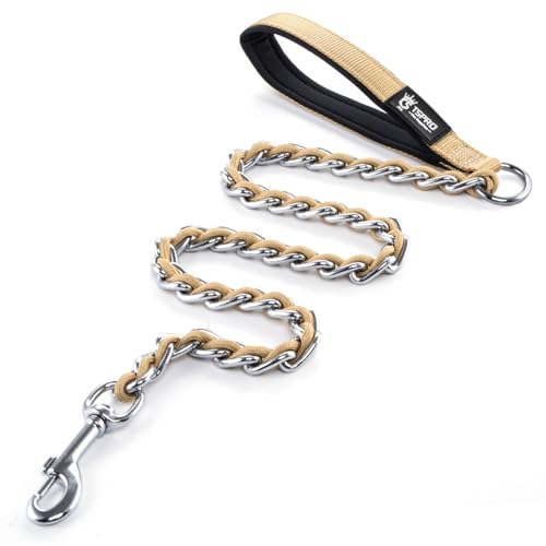 TSPRO Rostfritt stål hundkoppel metallkedja träning hund husdjur koppel med handtag