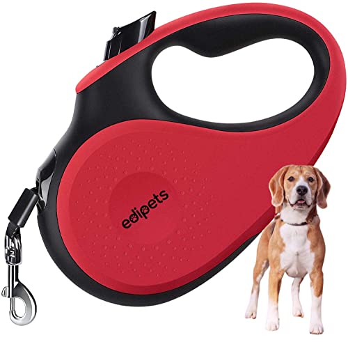 Edipets, Utdragbart hundkoppel, 5 meter, 360 ° trasselfritt, nylonband för träning och promenader, för stor medelstor och liten hund (röd, < 50 kg)