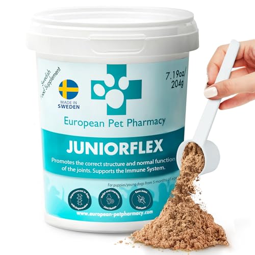 Svenska Djurapoteket JUNIORFLEX Kosttillskott för Valpar – Tillskott till Hund och Katt för Starkare Ledfunktion med Vitamin C, Grönläppad Mussla Från 5 Månader, 204g pulver