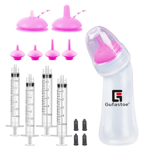 Gufastoe Husdjursuppfödningsflaska, med matnippel och sprutor, kattungar, valpar, flaskor för amningskit för valpar, hund, katt eller andra nyfödda husdjur, 15 stycken (rosa)