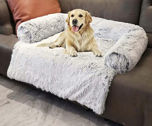 Yuing Mjuk plyschhundmatta bekväm lyxig hundbädd soffa soffa möbelskydd, 80 x 75 cm tvättbar katt hund filt kudde med halkfri botten, ljusgrå