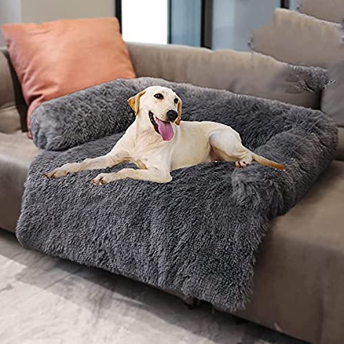Yuing Mjuk plyschhundmatta bekväm lyxig hundbädd soffa soffa möbelskydd, 80 x 75 cm tvättbar katt hund filt kudde med halkfri botten, mörkgrå