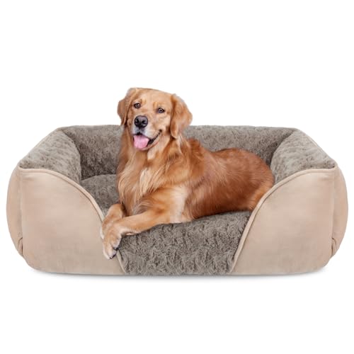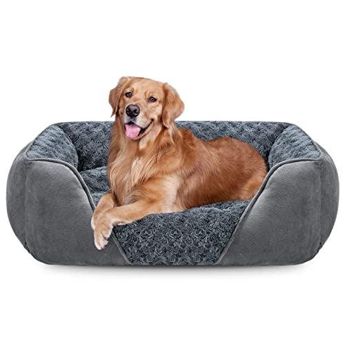 JOEJOY hundbädd stora hundar, hundbädd tvättbar fluffig, anti-ångest hundkorg halkfria hundbäddar mjuk bekväm rosa sammet hundbädd, husdjursbädd för stora hundar och katter, 89x63x23cm