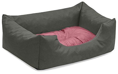 BedDog® hundsäng MIMI, hundbädd, hundkudde, hundmatta, kattbädd, husdjurssäng, sovplats av Cordura och mikrofiber velour, storlek L, grå/rosa