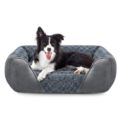 JOEJOY hundbädd medelstora hundar, hundkorg medelstora och stora hundar, hundbädd tvättbar fluffig, halkfria hundbäddar rosa sammet anti-ångest hundbädd, 76x61x23cm