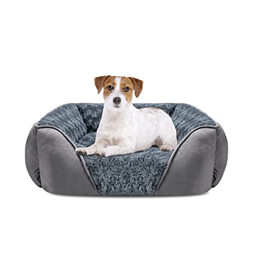 JOEJOY hundbädd små hundar, hundbädd tvättbar fluffig hundkorg, halkfri anti-rädsla mjuk bekväm rosa sammet hundbäddar, hundbädd för små hundar och katter, 51x48x15cm