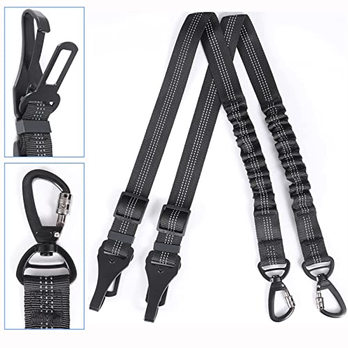 Hundbälte, 2 mysigt hundbilsäkerhetsbälte, 3-i-1 med justerbart säkerhetsreflekterande sömmar elastiska ledare sele, låsbar 360° vridbar karbinhake – svart