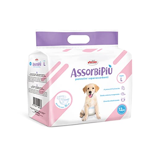 Record Absorberar fler engångsblöjor för hundar unisex extra absorptionsförmåga. Hundblöjor med elastiskt bukband. Förpackning 12 st. storlek L, omkrets upp till 70 cm. Hundar stor storlek