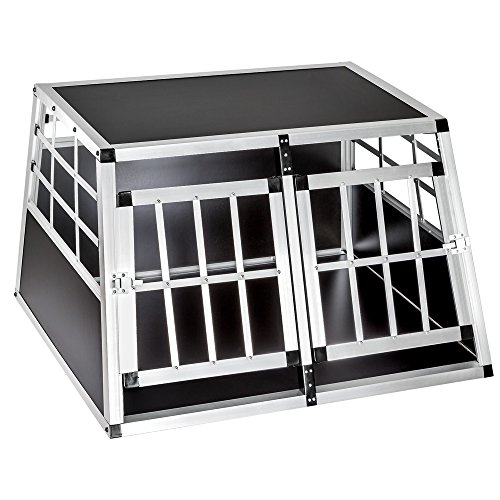 Tectake® Hundbur Dubbel Med Skiljevägg, Lutande Baksida, Stor, Hopfällbar i Metall, Säker Och Trivsam, UV-Skydd, Enkel Rengöring, 2 Dörrar, Perfekt för Bil Användning