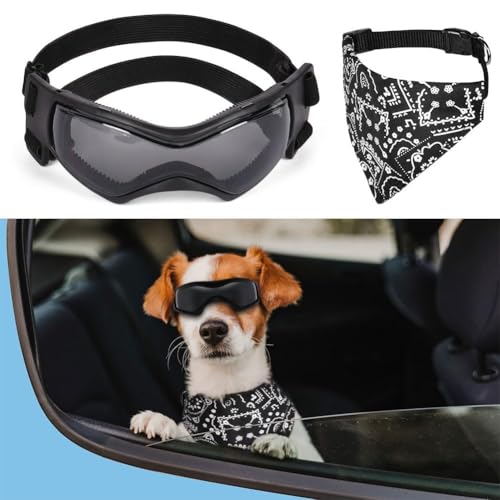 Adiwo husdjursglasögon, solglasögon för små hundar, vindtäta hundglasögon med justerbara remmar, UV-skydd, vattentät, lämplig för små och medelstora hundar (S)