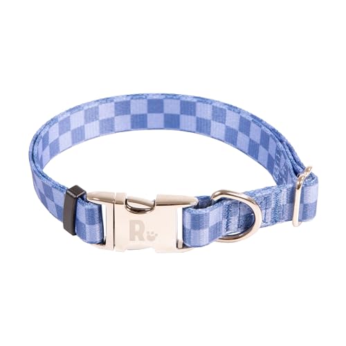 Rosewood blå schackbräde hundhalsband – justerbart husdjurshalsband för små, medium, stora hundar – snygg, hållbar krage med metallhårdvara – 25,4 – 35,5 cm