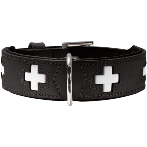 HUNTER SWISS hundhalsband läder, hög kvalitet, schweiziskt kors, 50 (S-M), svart
