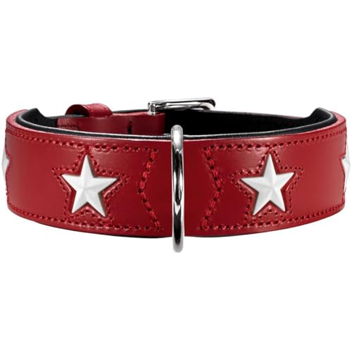 HUNTER MAGIC STAR hundhalsband, med stjärnor, läder, mjuk, 37 (XS-S), röd