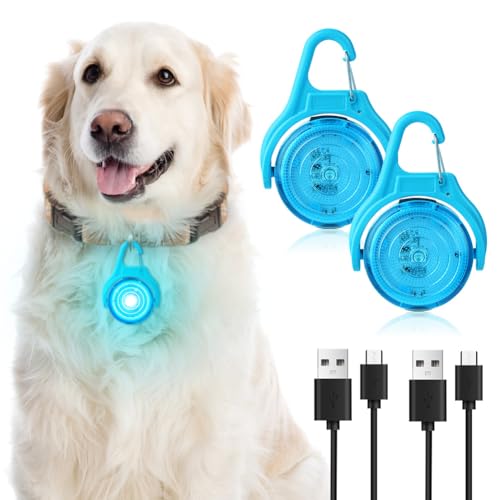 Ainiv LED-säkerhetslampor för hundhalsband, 4 blinkande lägen USB-uppladdningsbart hundljushänge för husdjur, nattvandring, camping, IPX68 vattentät, blå