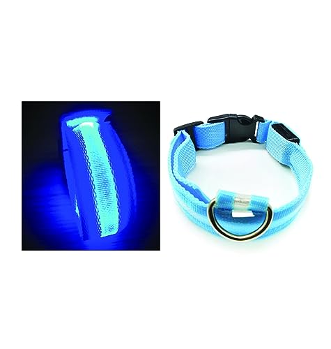 PETTY LED Hundhalsband - Opladdningsbar USB-halsband med spänne och säkerhetsknapp för små, medelstora och stora hundar (L Blå)