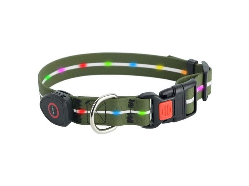 PETTY LED Hundhalsband - Opladdningsbar USB-halsband med spänne och säkerhetsknapp för små, medelstora och stora hundar (L Grön)
