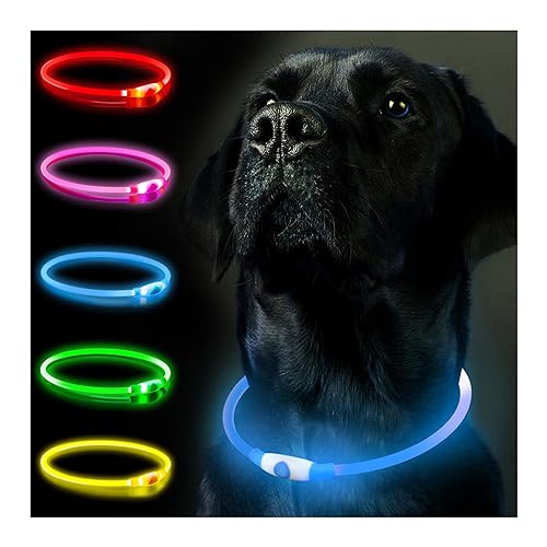 AUAUY Light Up Hundhalsband, LED Hund Halsband Light Usb Uppladdningsbart, Vattentätt Blinkande PVC Läder Justerbart Glödande Super Bright Light Up Hundhalsband För Mörka Små Medelstora Hundar