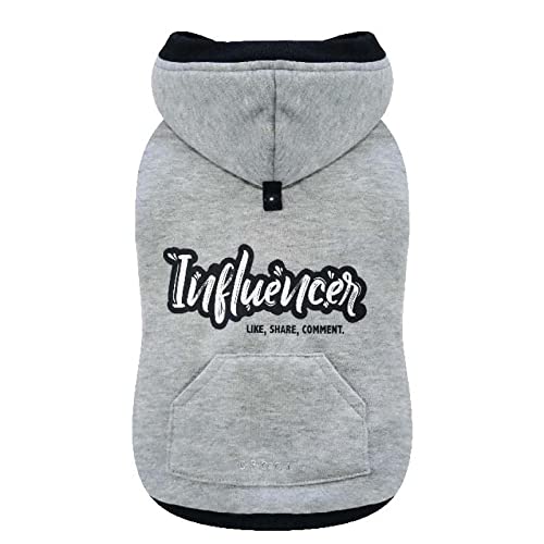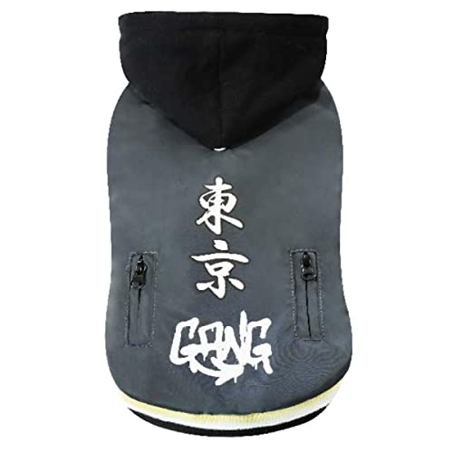 Croci Tokyo Gang hundjacka med huva – ryggstorlek 45 cm – vadderad justerbar med gummiband och hål för koppel och sele – grå