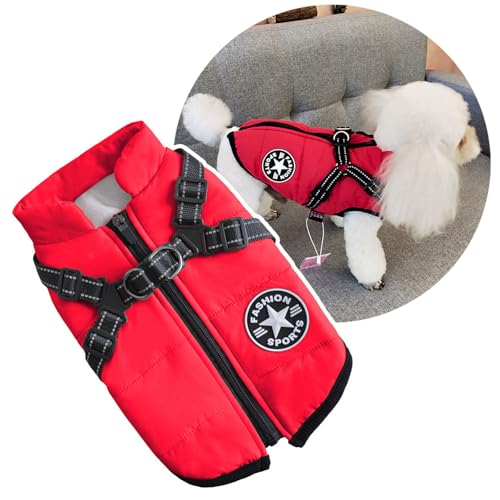 Vinterkappa med sele för hundar, varm liten hundjacka för utomhusbruk och kallt väder, vadderad hundväst, kläder för katter, valpar, små hundar