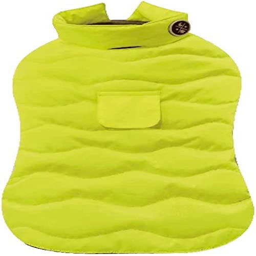 Croci Hundjacka Eco Leaves Yellow, ryggstorlek 35 cm, miljövänlig tillverkad av återvunna material, vadderad och justerbar, med gummiband och hål för koppel och sele – gul