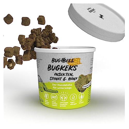Set om 8 (8 x 150 g) | BugBell träningsgodis för hundar | hundkex spannmålsfri och sockerfri | naturliga ingredienser | spenat och hampa för avkoppling | allergivänligt och purinfattigt insektprotein