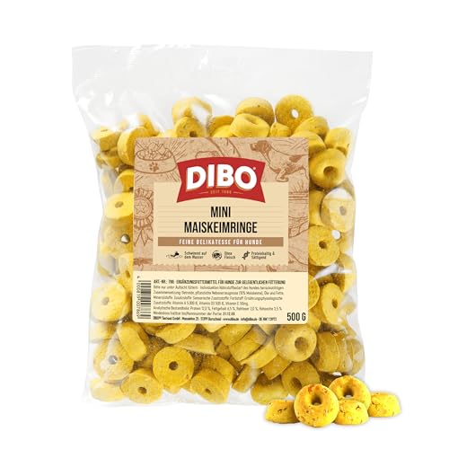 DIBO Mini majsgroddringar, 500 g påse, bakverk som hälsosam, naturlig kost för hundar, hundmat, barf, B.A.R.F., godis, hundkex