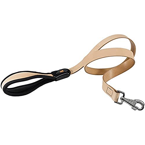 Ferplast hundkoppel av läder för stora hundar, vadderat handtag Giotto längd 120 cm bredd 25 mm. Beige