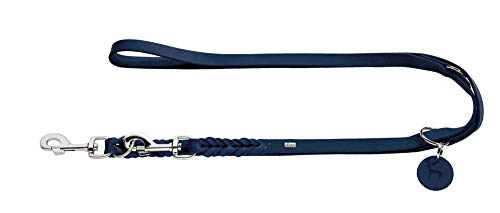 HUNTER SOLID EDUCATION justerbar hundkoppel läder, flätad, robust, mjuk, 1,3 x 200 cm, mörkblå
