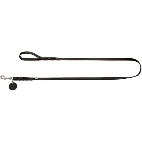 HUNTER Justerbar hundkoppel, läder, enkel, slitstark, smidig, 1,6 x 200 cm, svart
