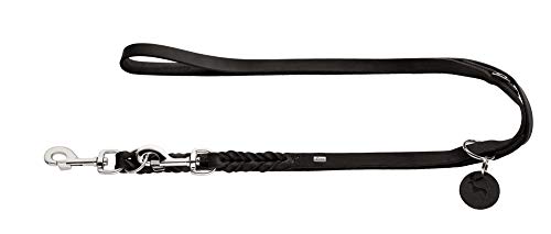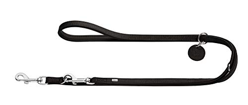 HUNTER Comfort justerbar hundkoppel, läder, enkel, slitstark, smidig, 2 x 200 cm, svart