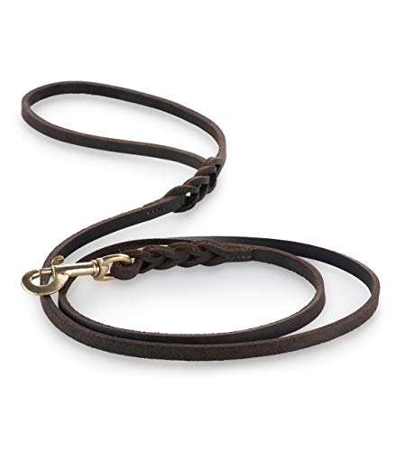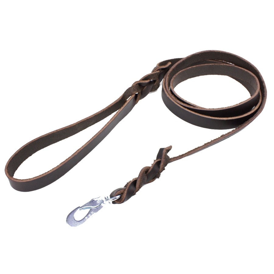 Dingo hundkoppel i mjukt läder med snäppkrok, handgjort med flätade delar, brun 11234,8 mm