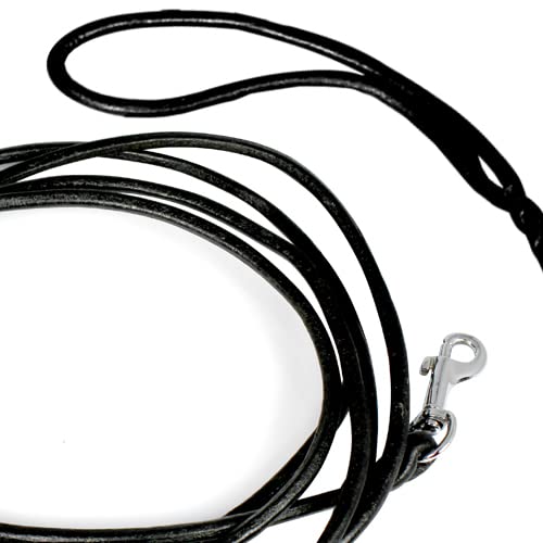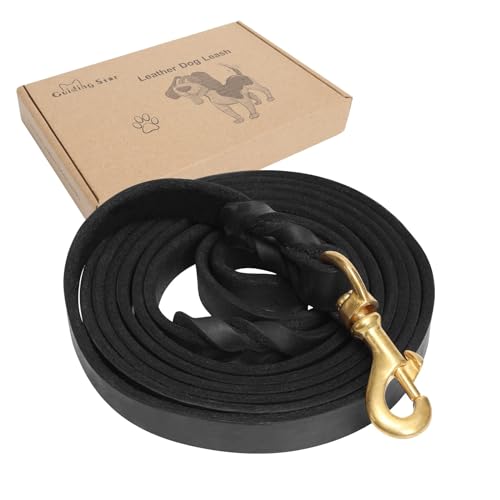 Ledstjärna svart läder hundkoppel, 1,8 m, mjukt hållbart äkta handgjort flätat läder hundkoppel, slitstark stark hundträning promenadkoppel för stora och medelstora hundar