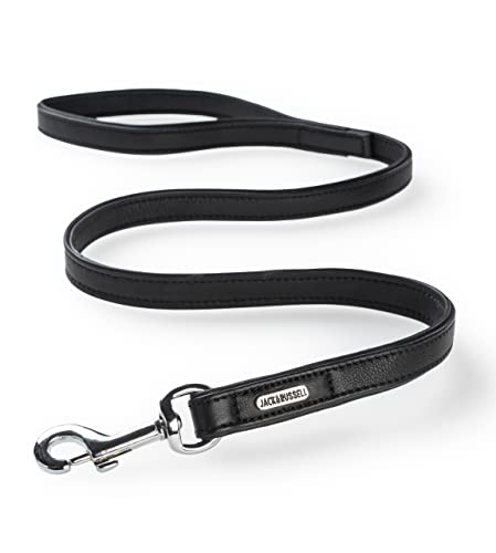 Jack & Russell Premium läder hundkoppel Dexter 2,0 m - hundar läderkoppel med mässingskarbinhake - äkta läderkoppel flera gånger justerbar Dexter (svart)