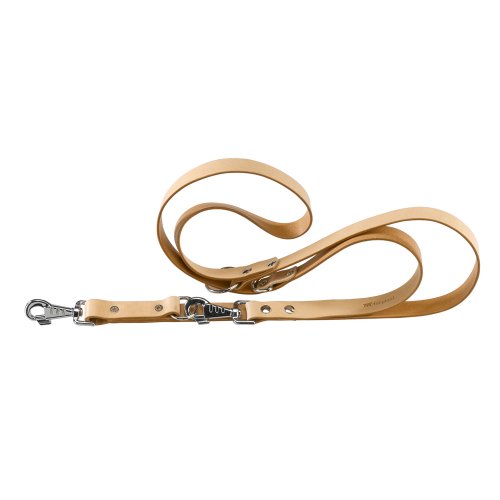 HUNTER justerbart hundkoppel av läder, färg: natur, extra slitstark, 3-vägs justerbar, med lädernyckelring, tillverkad i Tyskland, storlek: 16/200