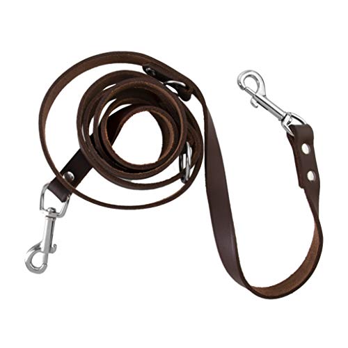 Brunt läder hundkoppel 7/6/5 fot 3 typer läderbälte för promenader löpning träning koppel (2,1 m)