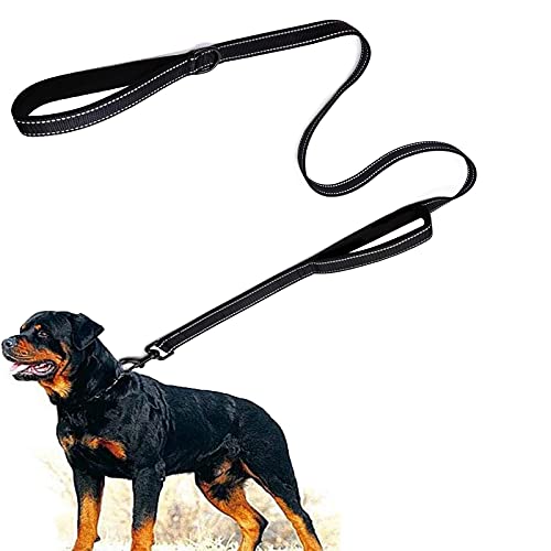 Eyeleaf Reflekterande och starkt hundkoppel med vadderat dubbelt handtag slitstarkt Nylon Hundkoppel Stor Storlek Medium 1,5 meter lång svart
