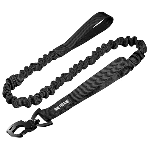 OneTigris Fjäderbelagt hundkoppel 86 cm – 120 cm styrkoppel nylon med tiger tandmetallklämma och 2 mjuk stoppning, längd – svart