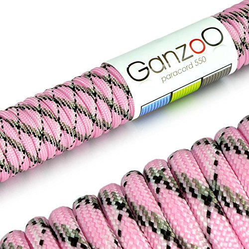Ganzoo paracord 550 universallina typ 3 4 mm, 30 m, nylon polyester med 7 kärntrådar, för outdoor och vardagsbruk, fästa och säkra utrustning, knyta armband, hundhalsband hundkoppel, pink svart