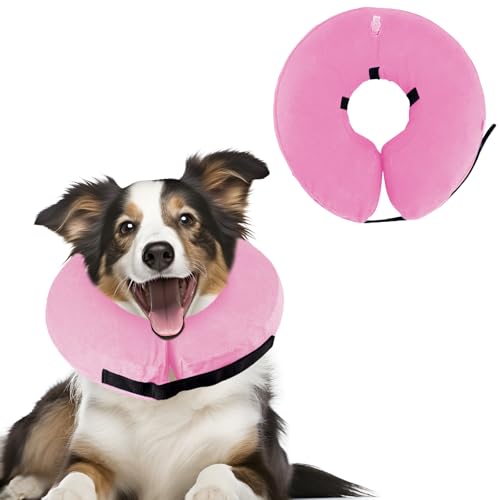Uppblåsbar Hundkrage | Utmärkt Alternativ till Plaststrut eller Plastkrage | Vår Superbekväma Hundkrage är ett Perfekt Hundhalsband när Hunden Återhämtar Sig | Lämplig för Stora Hundar (Rosa)