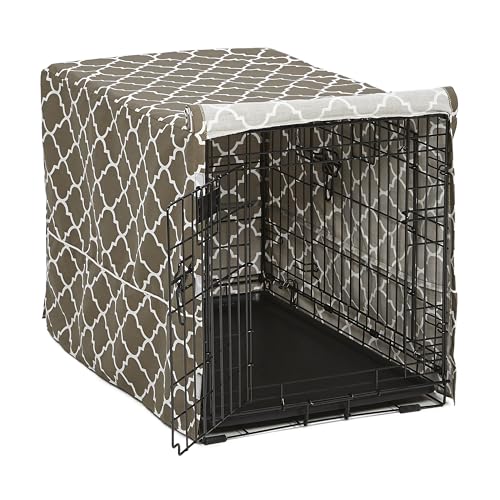 MidWest hem för husdjur hundlåda skydd med teflon tygskydd, poly-bomull integritet kennel skydd passar de flesta 91 cm lådor, brunt designtryck, tvättbar, minskar skällande, CVR36T-BR