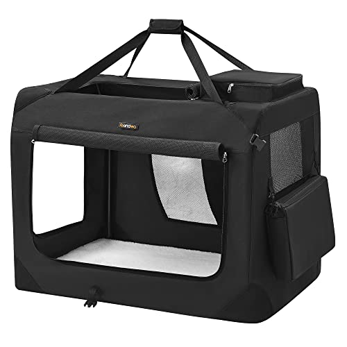 Feandrea hopfällbar hundlåda, hundtransportlåda, XXXL, hundväska, Oxford-tyg, nät, andas, bärbar, metallram, med handtag, fickor, 102 x 69 x 69 cm, svart PDC10H