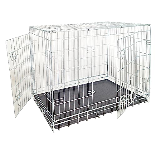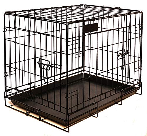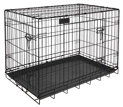 New World 76 cm vikbar hundlåda i metall, inkluderar läckagesäker plastbricka, hundburens mått 76 L x 19 B x 51 H cm, för medelstora hundraser