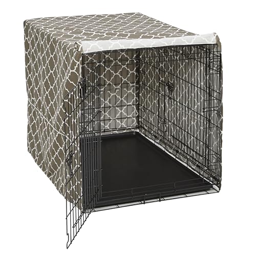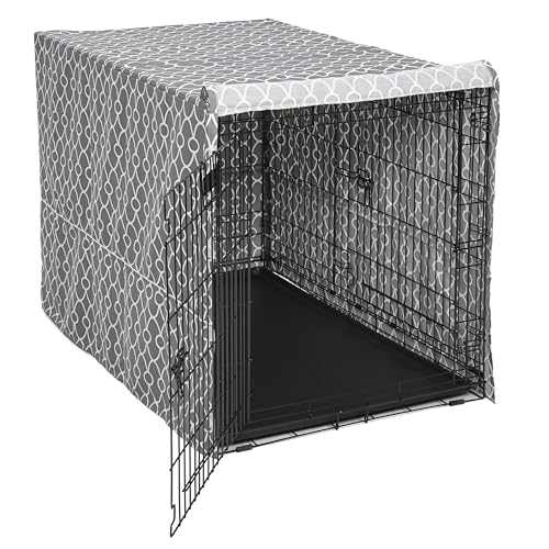 MidWest hem för husdjur stor hundlåda skydd med teflon tygskydd, poly-bomull integritet kennel skydd passar de flesta 106 cm lådor, grå designertryck, tvättbar, minskar skällande, CVR42T-GY