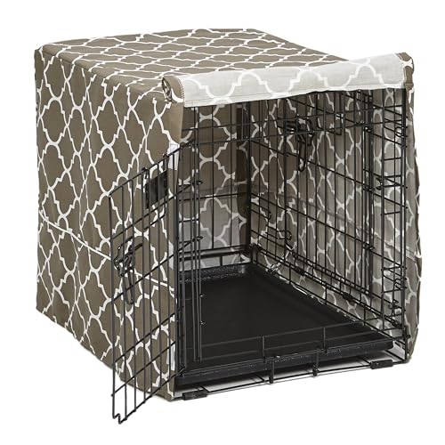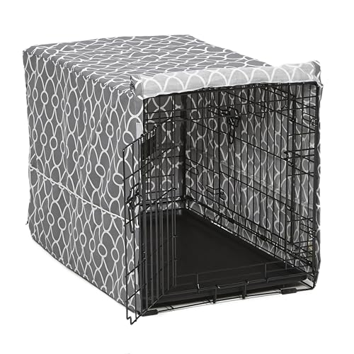 MidWest hem för husdjur hundlåda skydd med teflon tygskydd, poly-bomull integritet kennel skydd passar de flesta 91 cm lådor, grå designertryck, tvättbar, minskar skällande, CVR36T-GY